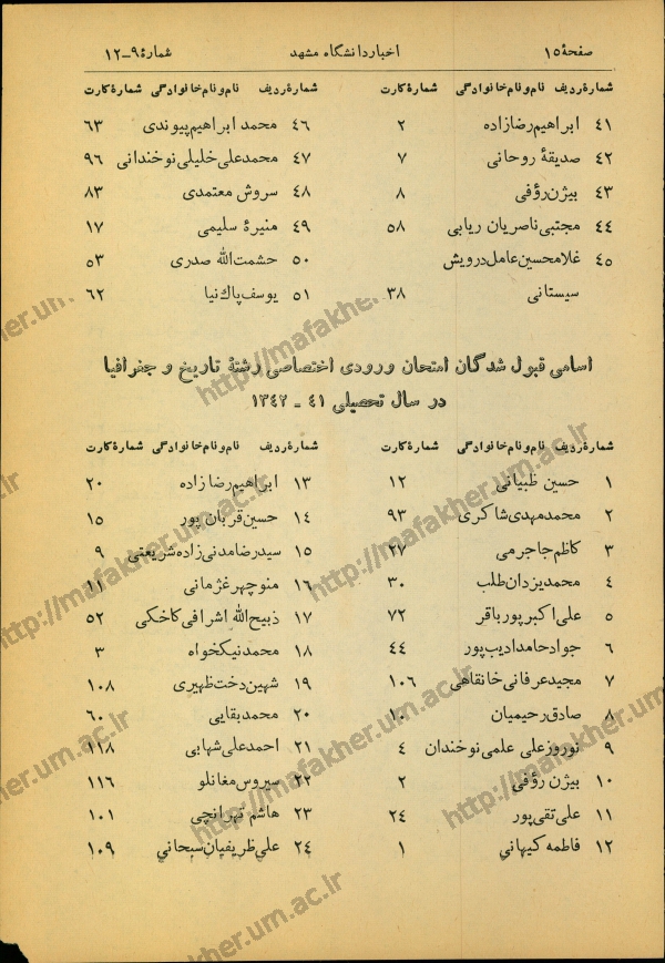 مسابقه ورودی, رشته تاریخ و جغرافیا, اسامی قبول شدگان