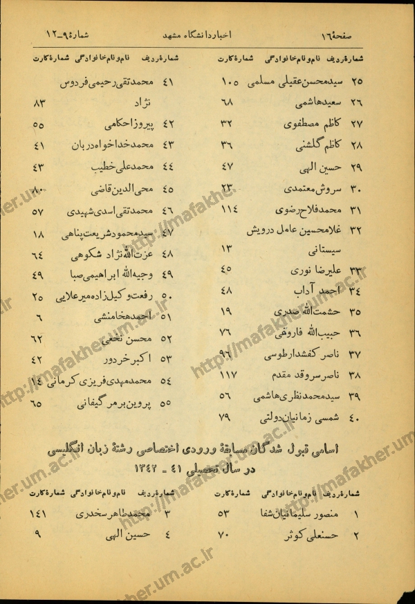مسابقه ورودی, رشته زبان انگلیسی, اسامی قبول شدگان
