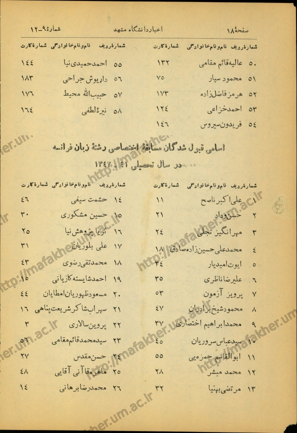 مسابقه ورودی, رشته زبان فرانسه, اسامی قبول شدگان