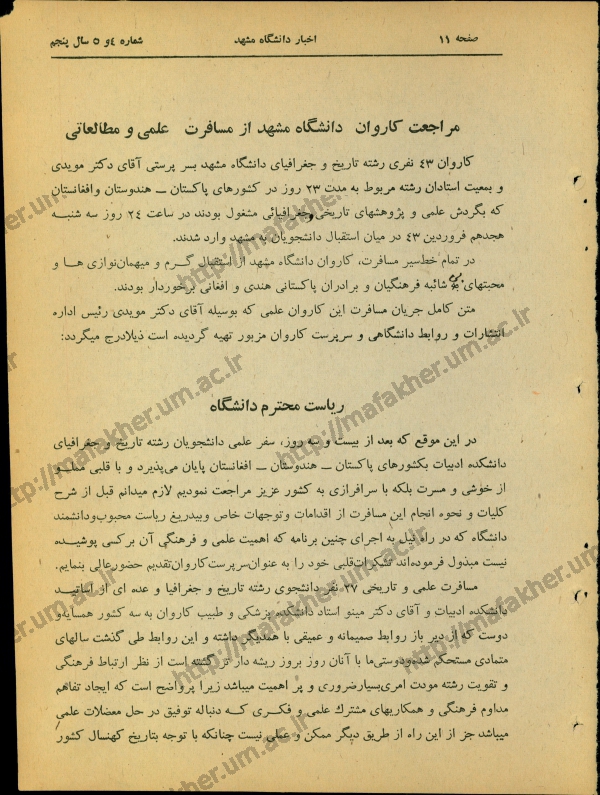 گزارش دکتر مویدی درباره مسافرت علمی و مطالعاتی به کشور های پاکستان و هندوستان و افغانستان