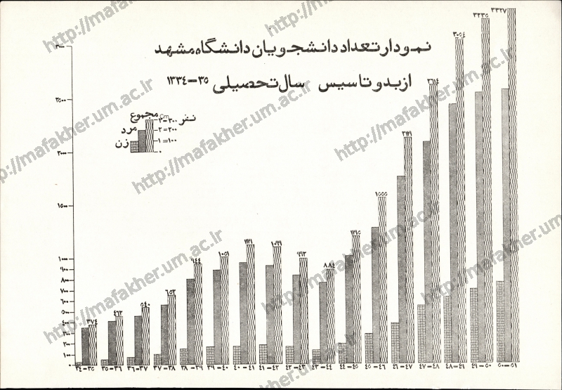 نمودار تعداد دانشجویان دانشگاه مشهد از بدو تاسیس